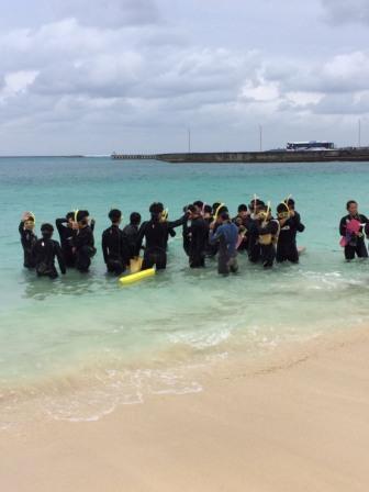 2日目の今日は午前中に選択別体験学習(シュノーケル・バナナボート、陶芸、貝細工)をしました。