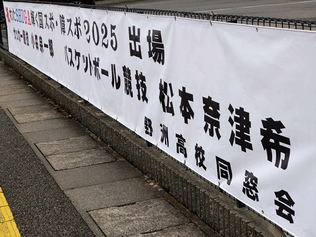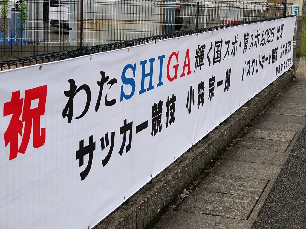会期前競技がすでに始まっている「わたSHIGA輝く国スポ・障スポ2025」に本校から出場する小森宗一郎さん(1年・サッカー)と松本奈津希さん(1年・バスケットボール)を激励する横断幕が完成し、このほど学校周辺の道路沿いに掲げられました。