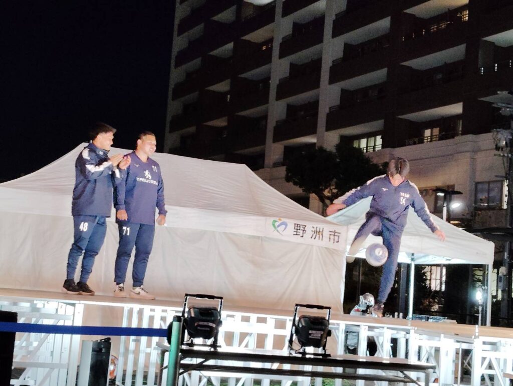 軽音学部のエネルギッシュな演奏とダンス部のクールなパフォーマンス、そして有志で出演した男女ペアによる人々を魅了する歌声が会場全体に響き渡り、寒い夜を熱くしてくれました。そして、サッカー部による華麗なボールテクニックが会場を沸かせました。セクシーフットボールの名に恥じぬ素晴らしい個人技でした。