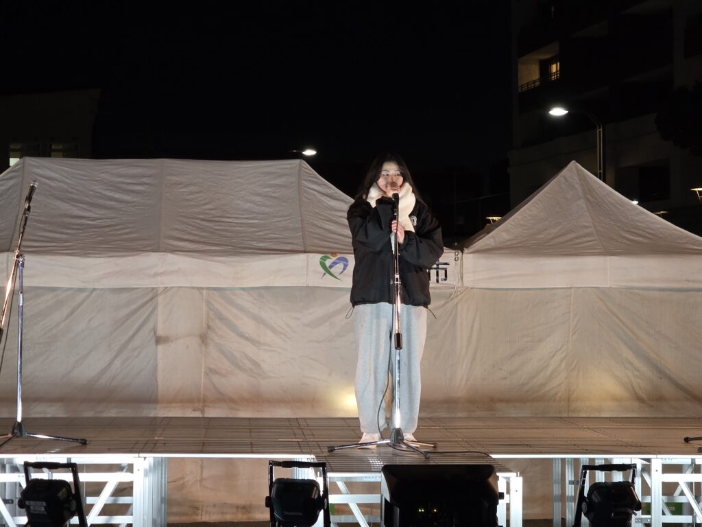 吐く息は白く指先がかじかむ中でしたが、軽音学部の熱い演奏、ダンス部の一糸乱れぬフォーメーション、有志2人の観客を魅了する歌声が会場に響き渡りました。曲が終わるたびに湧く拍手は、寒さを忘れさせるストーブでした。