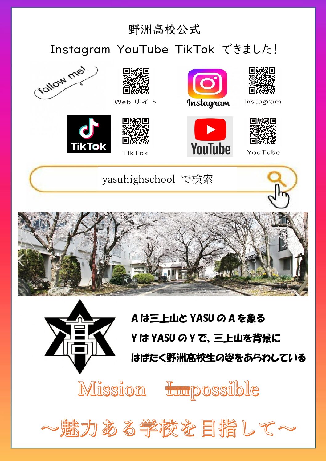 野洲高校公式Instagram・YouTube・TikTokを始めました!